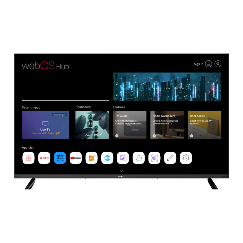 Disfruta de una experiencia de visualización sin complicaciones con los televisores inteligentes InfinityPro QLED con tecnología webOS. Ya sean noticias, deportes, entretenimiento o cualquier otra cosa que desees, todo estará fácilmente accesible cuando lo necesites.