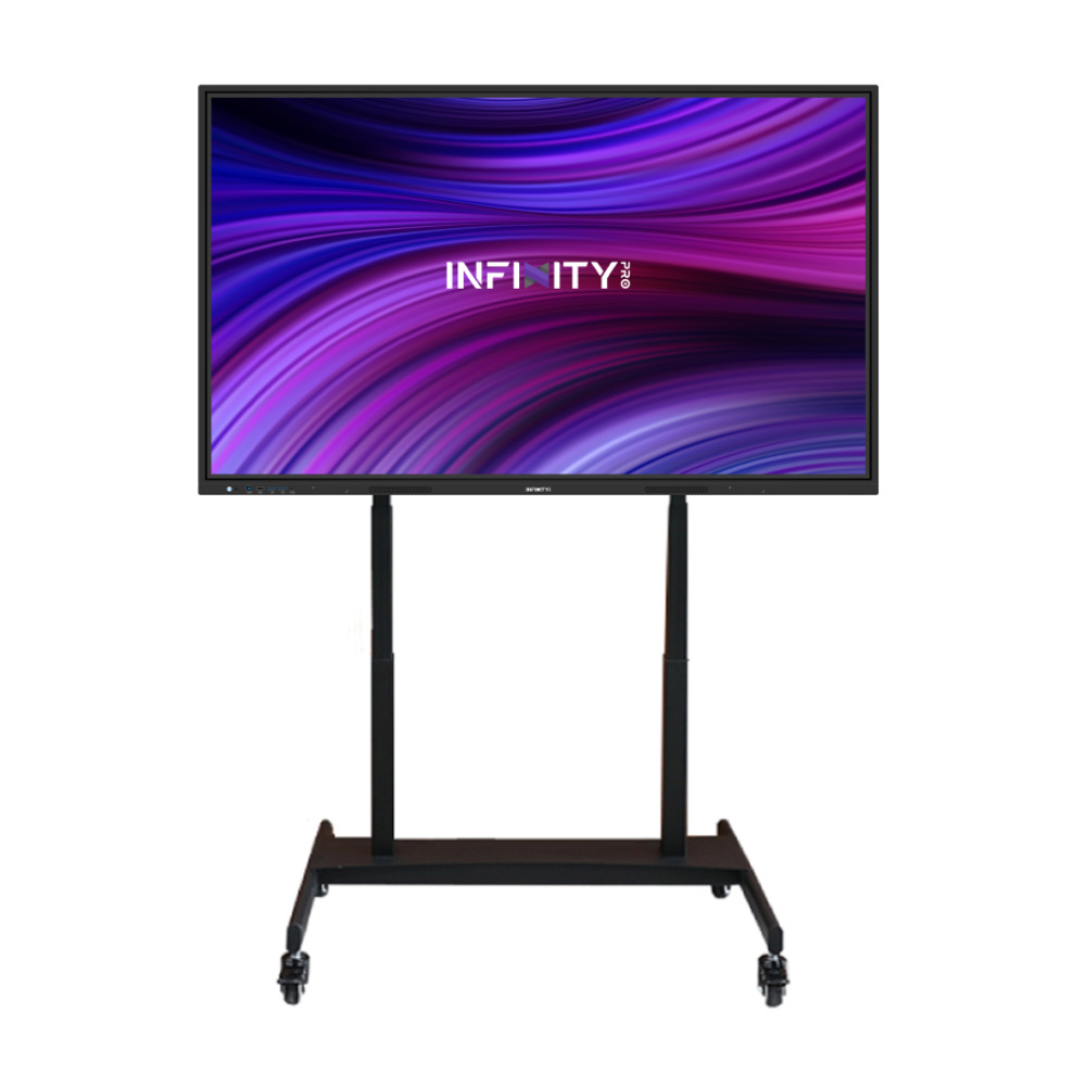 El soporte móvil InfinityPro admite diversos anchos de pantalla y se ajusta a sus necesidades de visualización. Fabricado en resistente acero laminado en frío, soporta con seguridad pantallas de hasta cien kilogramos.